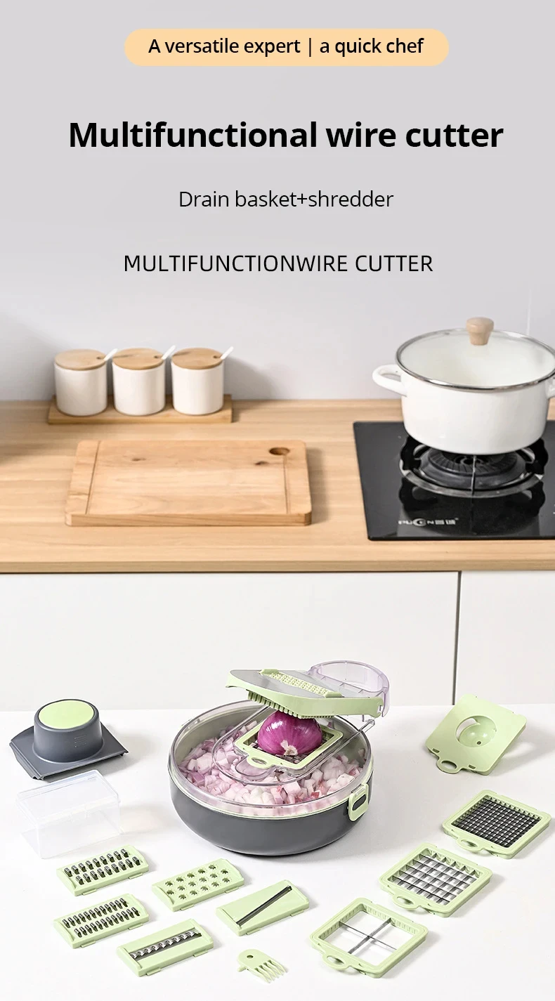 14 in 1 Vegetable Cutting Multifunctional Stainless Steel Vegetable Chopper Potato Manually Cut Shred Slicer Grater Kitchenware