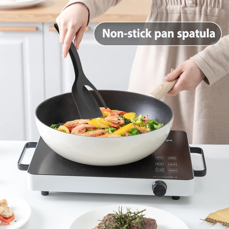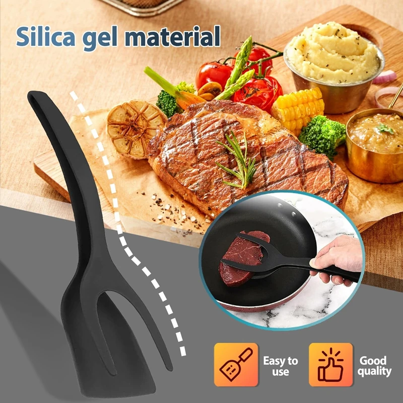 【Bread turner】soft material, no harm and scratch to your pan. 2 in 1 grip and flip spatula tongs egg flipper tong pancake fish french toast omelet making for home kitchen cooking tool.