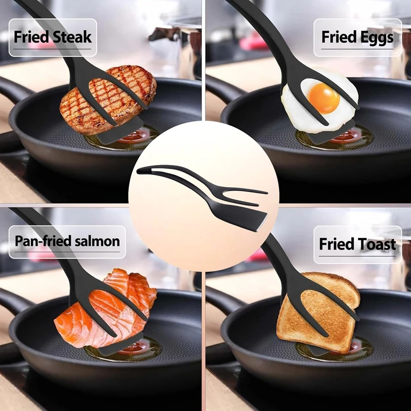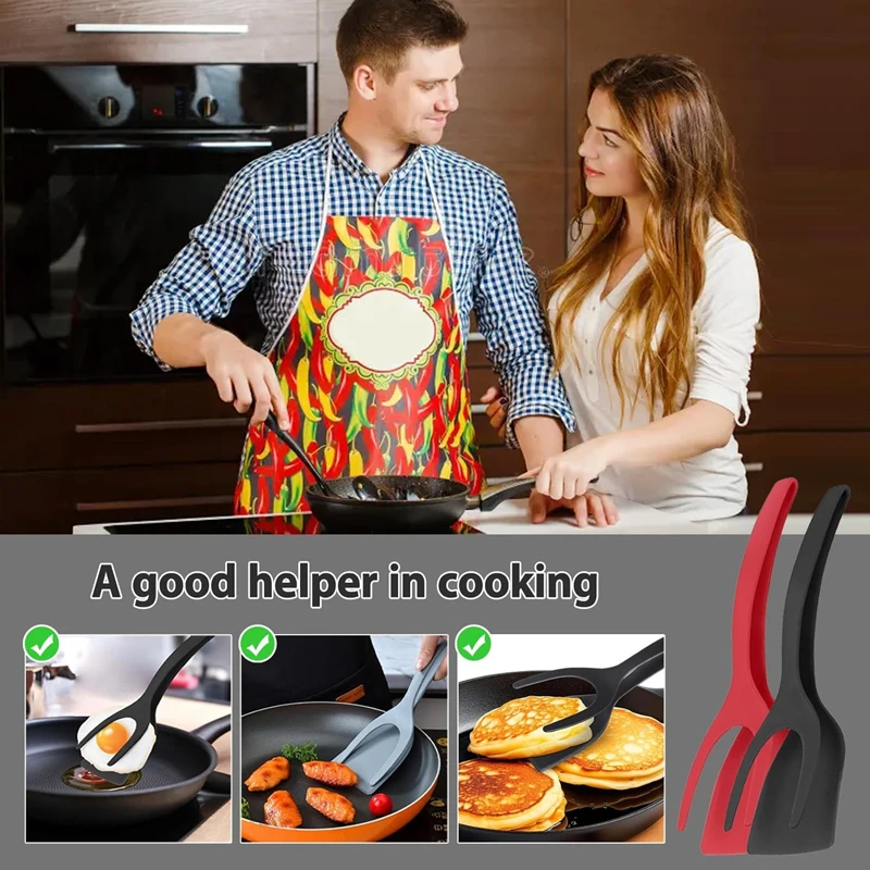 2 in 1 Grip and Flip Spatula Tongs Egg Flipper Tong Pancake Fish French Toast Omelet Making for Home Kitchen Cooking Tool