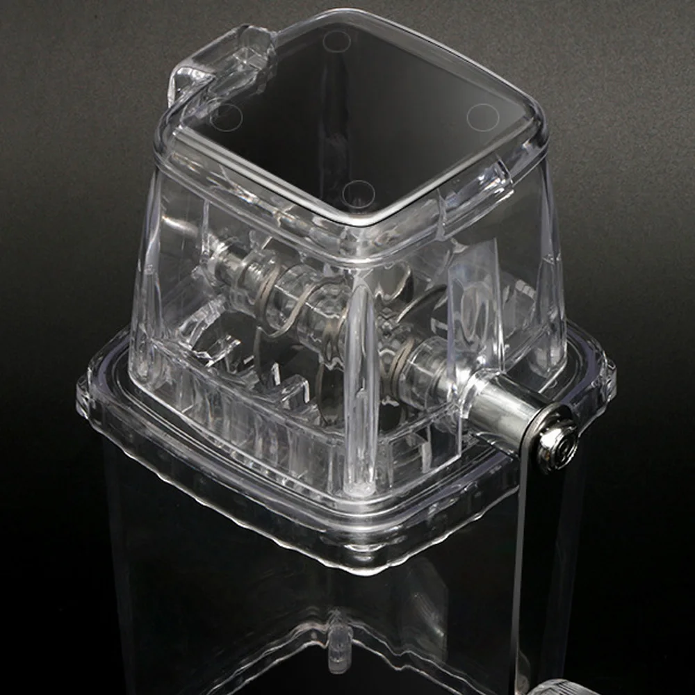 Easy to operate: you just need turn the crank to the left to get coarse crushed ice cubes, or turn the crank to the right to get chopped ice cubes.